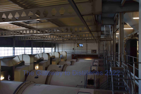 Die Jackton Keimtrommel-Mälzerei. Lager der selbstangebauten Sommergerste, Conic Steeping Vat, Förderbänder, Malztrommeln, es fehlen Fotos der Silos, wo das Malz für die Destillation zwischenlagert.